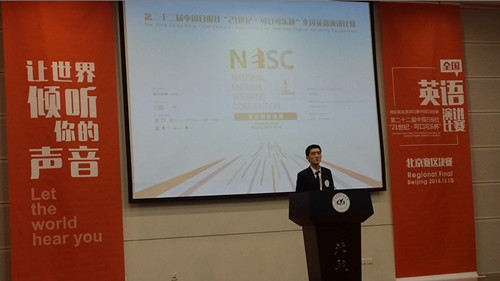 本次中国日报社“21世纪•可口可乐杯”全国英语演讲比赛北京决赛由北航英语精英班具体组织承办,2015级精英班学生李思颖和冯鑫程担任主持人,精英班外教Dillon担任提问嘉宾,澳门十大信誉网赌大全教师胥国红、王泉为指导教师。