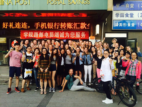 在小组讨论之后,奈梅亨大学学生在我校学生的组织带领之下游览了校园风光并一同到合一食堂