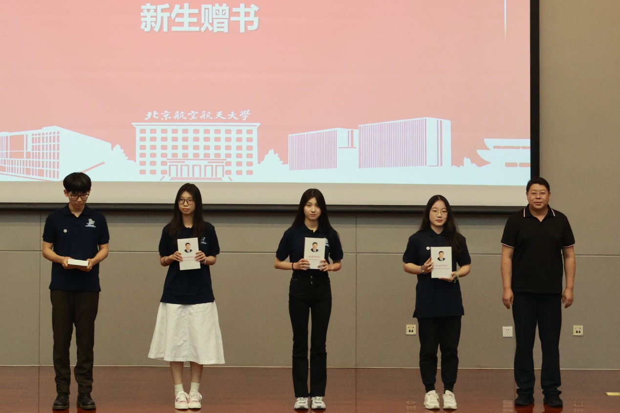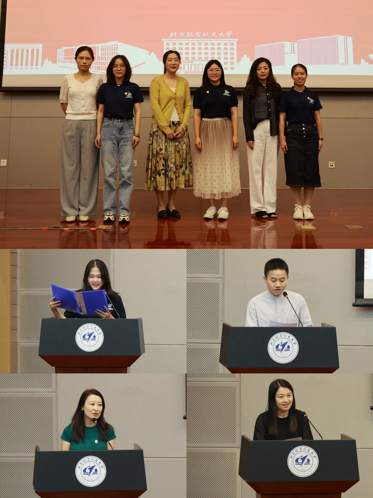 院长助理徐涛、邬丽、王悦为新生佩戴院徽。同时,台下全体新生将院徽戴于胸前。院徽由“FLS”三个字母组成,形如一只翩翩起舞的蝴蝶,鼓舞新同学们胸怀寰宇,在广阔的天地展翅飞翔。新生代表徐子涵(2023级法语专业本科生)、老生代表明志龙(2022级语言学专业硕士生)分别分享了他们的思考与感悟。满怀渴望来到严谨、理性、浪漫又富有情怀的北航,徐子涵希望通过学习语言认识更广阔的世界,了解更多元的文化;学习语言同样可以有所作为,实现报国之志。明志龙回顾过往一年的求学经历,他认为北航澳门十大信誉网赌大全为同学们提供了广阔的平台与丰富的实践机会,同学们应该抓住在北航求学宝贵机遇,提升个人核心素养,以应对科技不断发展的挑战。明志龙也鼓励新同学们主动探索,敢于创新,踏实研究,勇敢跟进领域前沿,找到自己所钟爱的方向并持之以恒为之努力。接下来,澳门十大信誉网赌大全副院长邢春丽以及党委副书记刘威老师分别上台为新生班主任、学业导师,以及新生辅导员、梦拓颁发聘书。