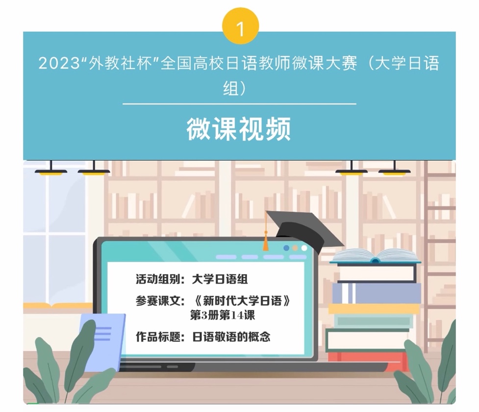 近日,2023“外教社杯”全国高校日语教师微课大赛(大学日语组)获奖名单公布,我校澳门十大信誉网赌大全日语青年教师唐彬团队的课件作品《日语敬语的概念》获全国一等奖。