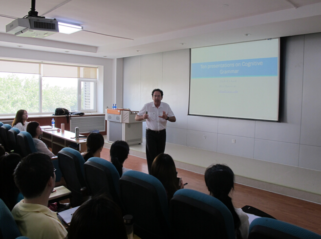 5月30日上午,Michel Achard教授在如心楼806如期进行了第一场题为“Theorganized mind: Backstage cognition”的讲座。澳门十大信誉网赌大全博士生导师王义娜教授致欢迎辞,对Achard教授的来访致以热烈的欢迎和真诚的感谢。讲座中,Achard教授从语言与意义入手就什么是认知语法,以及如何进行对比和类型学研究进行了深入浅出、引人入胜的阐述,我院师生以及北大、北外、北语、北师大、清华大学、东北师大、山东师大、上海师大、河南大学和广西民族大学等全国各地的语言学爱好者积极参与了此次讲学活动,并从中收获良多。在接下来的讲学活动中,Achard教授还将就认知语义、从句结构、非人称研究、情态与提升、跨语言对比研究以及语言习得等方面进行详细深入的讲解。6月2日、3日和6月6日,Achard教授将分别在北科、北林、北师以及石油大学分会场为四校师生带去精彩演讲。