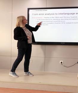 在讲座中,Hasselgård教授首先介绍了语料库在语言对比研究中的应用,接着介绍了语料库在中介语研究中的应用,并试图将基于语料库的语言对比研究和基于语料库的中介语研究置于同一理论框架之下。随后,Hasselgård教授介绍了奥斯陆大学的习语(idiomaticity)项目,通过展示以话题标记whenit comes to为研究对象的案例说明语言对比研究和中介语研究在理论体系和研究方法上是共通的。