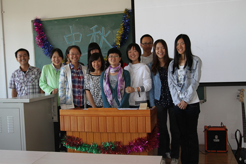 012年9月29日上午9时,澳门十大信誉网赌大全2012级中秋慰问会在J5-203举行。澳门十大信誉网赌大全分团委书记李丹老师,英语班胥国红老师、宫海荣老师、张继琴老师以及德语班贺克老师抽出休息时间来到沙河校区亲切慰问2012级新生,为离家在外的学生送去中秋的祝福。