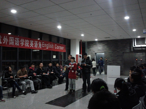 2012年11月23日,由北航澳门十大信誉网赌大全学习部主办的本学期第一次英语角活动,在沙河校区教学楼1、2号楼之间的5层走廊举行。此次英语角是北航外语文化月系列活动之一。参与此次活动的有学习部的全体成员,外教Jeremy,报名英语会员的同学,外交学院sica的部分成员,总人数将近70人,规模较大。
