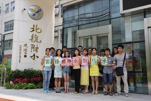 在研工部创新基金的支持下,航空学院ZY13051班、SY13055班党支部联合澳门十大信誉网赌大全语言学文学博士班联合党支部获批“今天我也是雷锋”项目-朝阳行动,赴北航附小志愿系列活动。